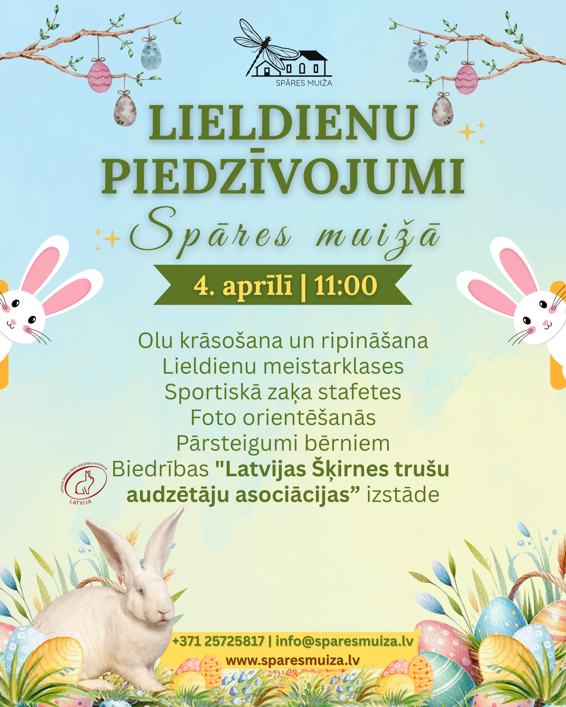 Šo sestdien, 4. aprīlī, Spāres muiža pārvērtīsies par īstu pavasara pasaku vietu, kur prieks, smiekli un piedzīvojumi gaidīs gan lielus, gan mazus!