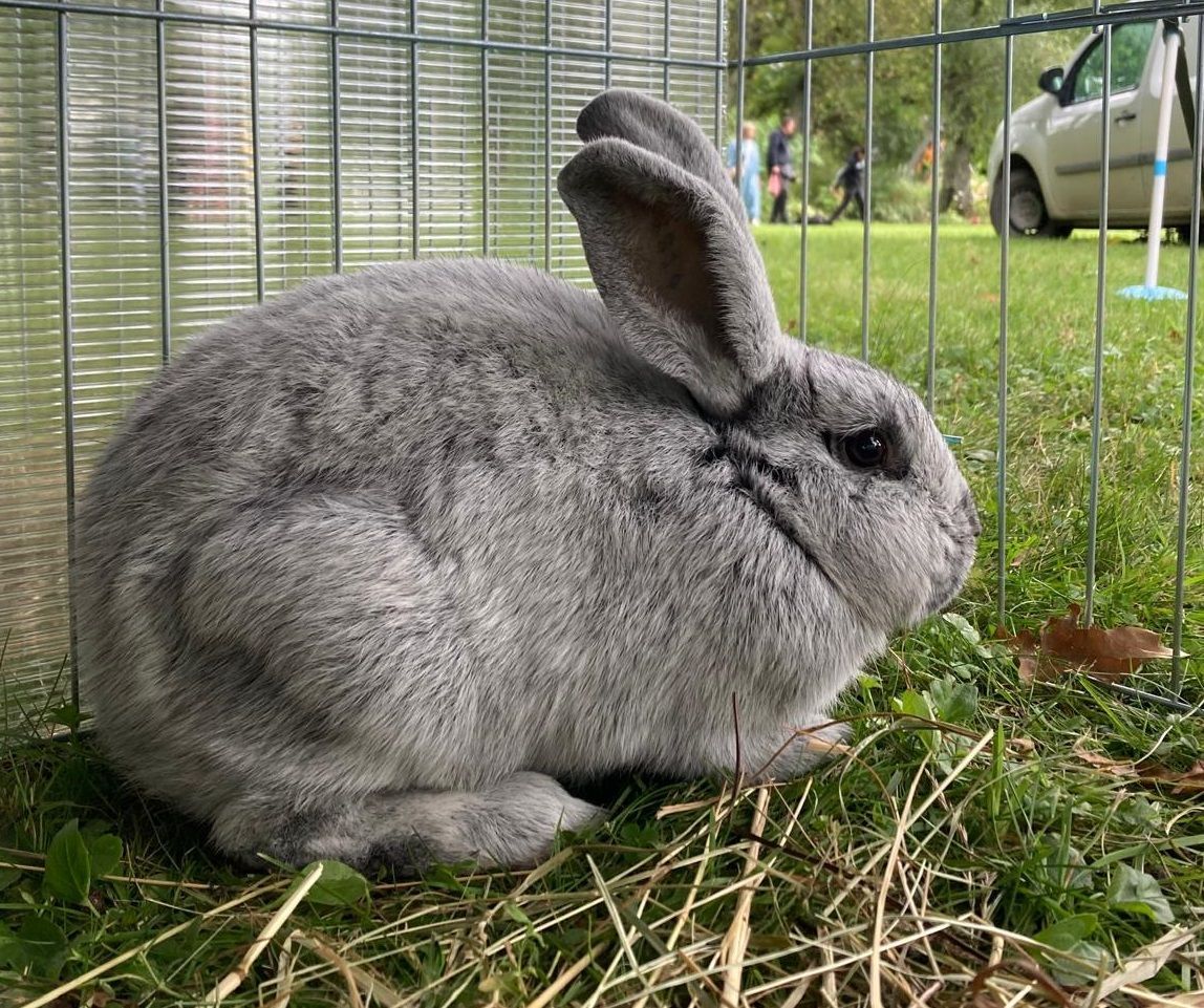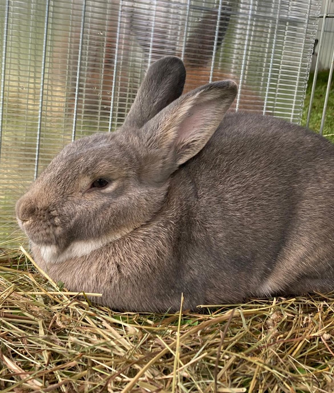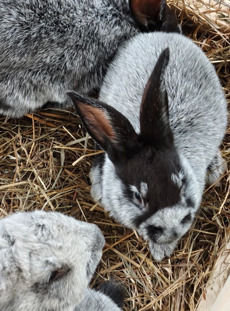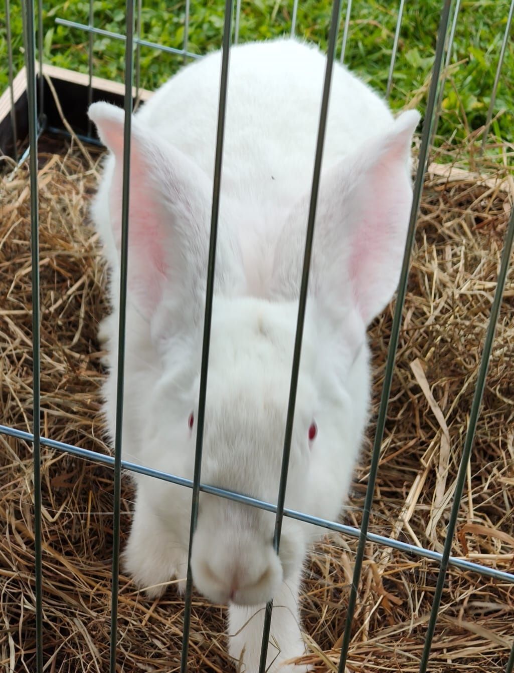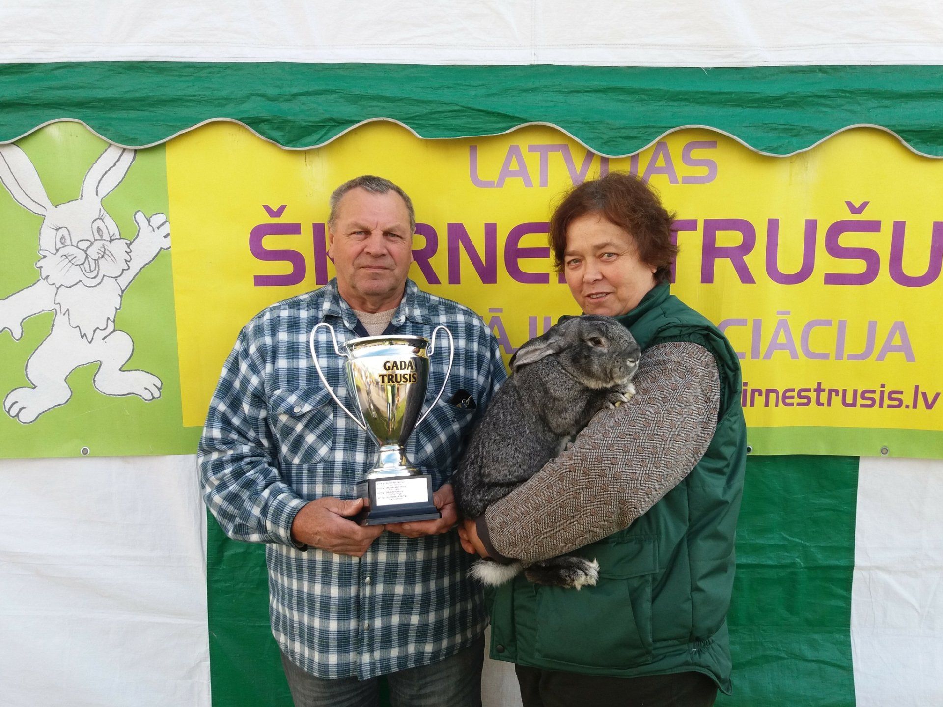 Lielās šinšillas šķirnes trusis no IVARA VIENTUĻA saimniecības.