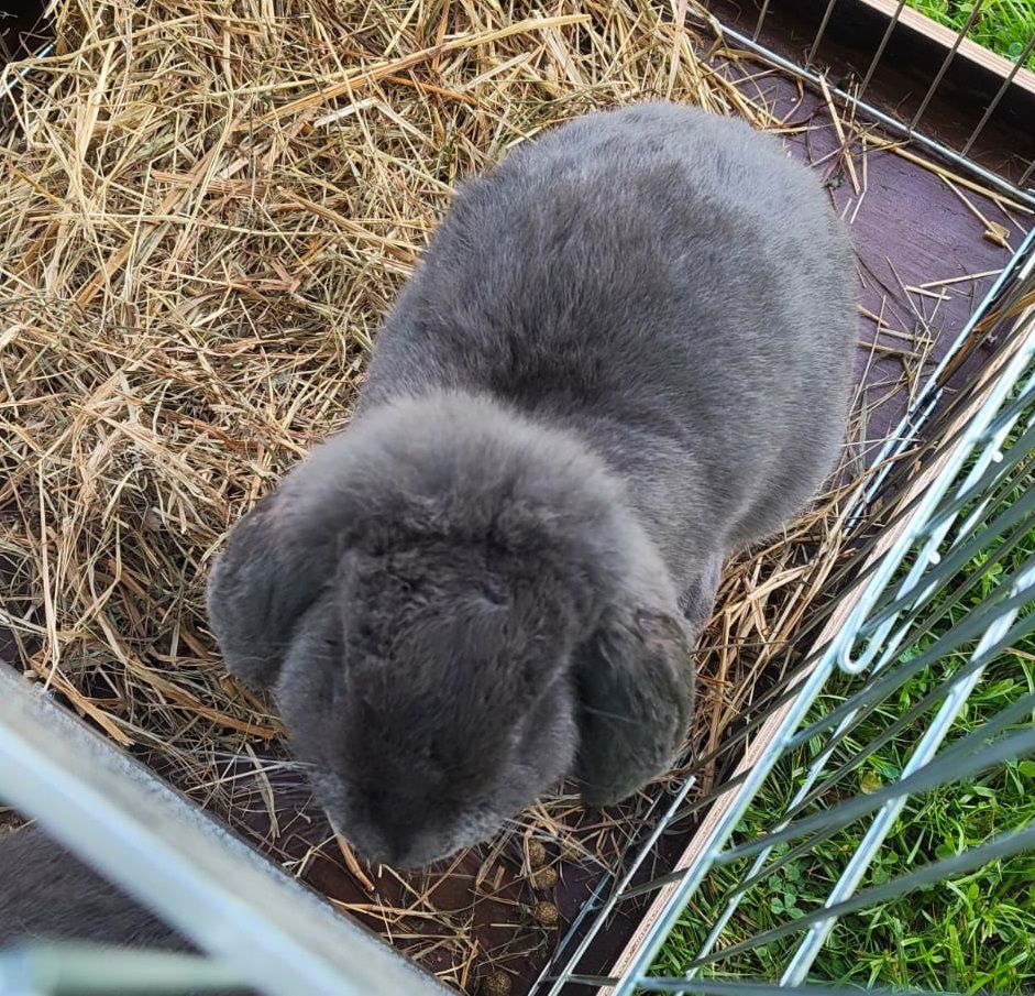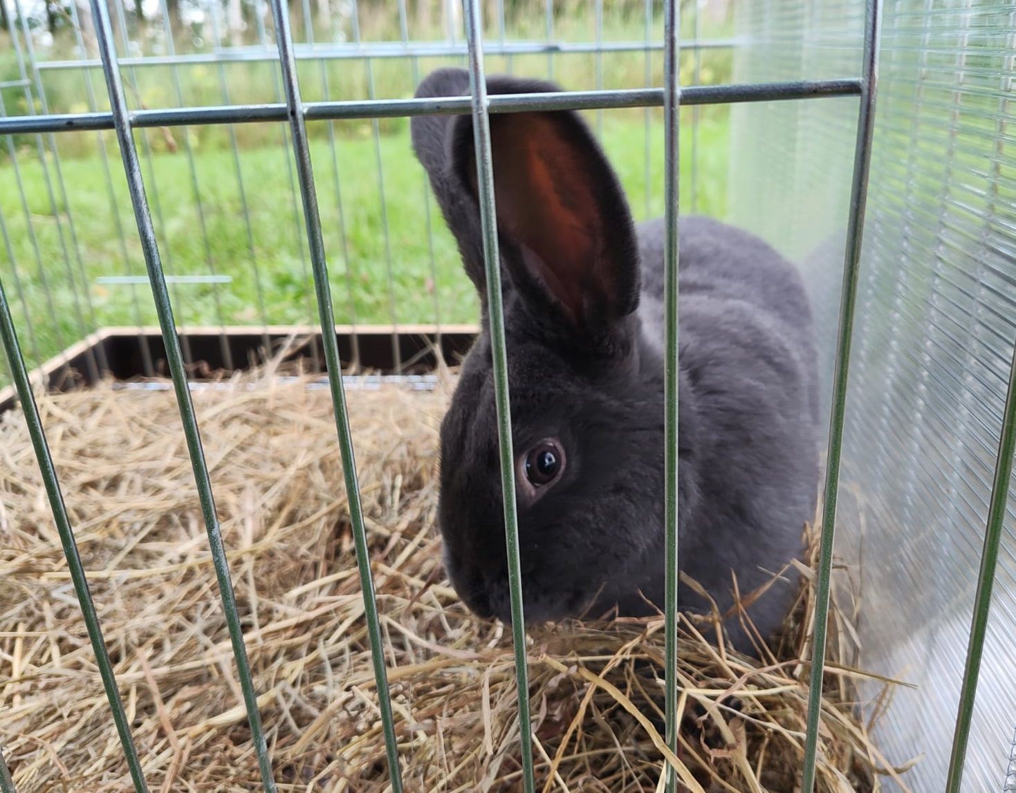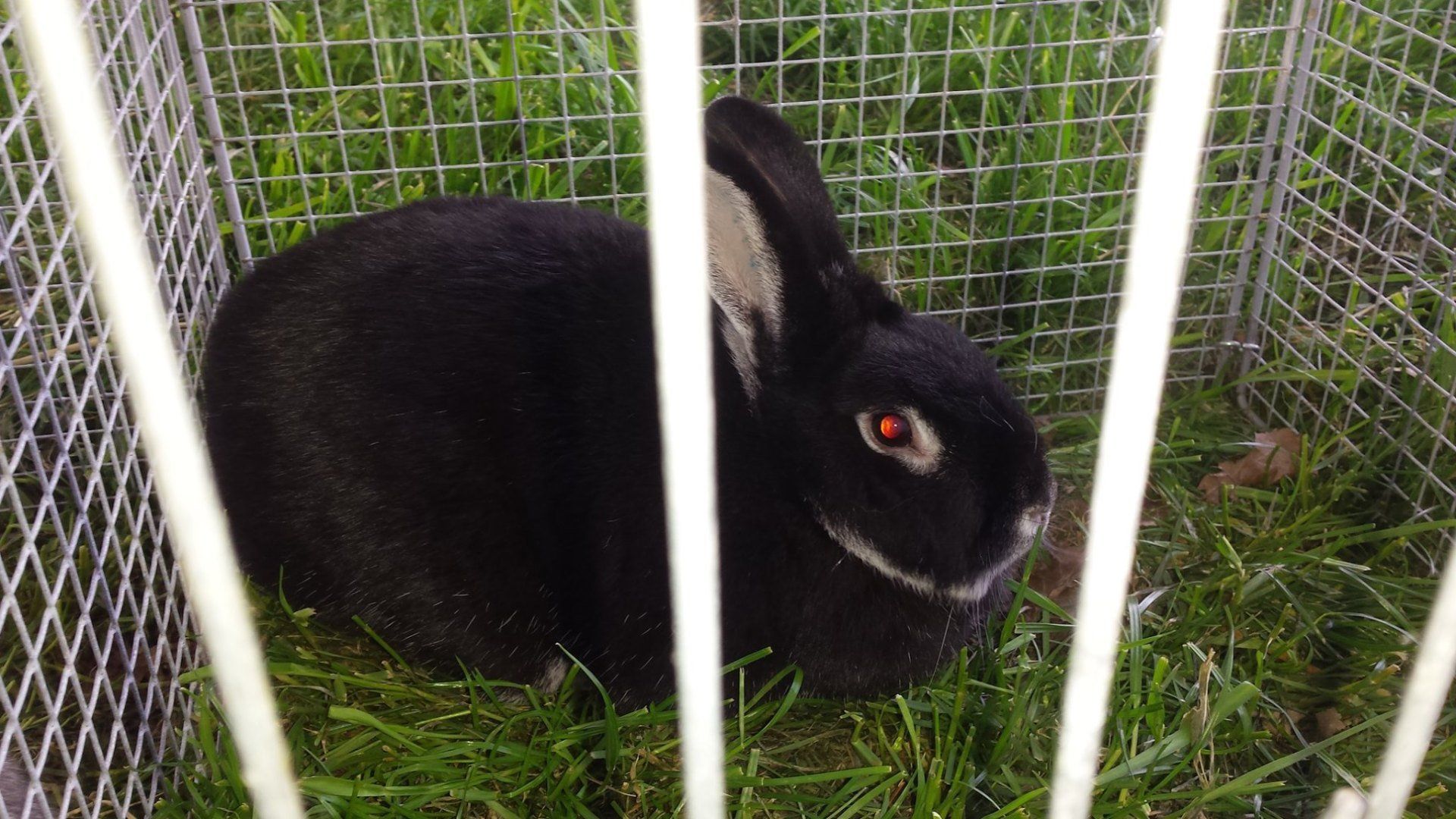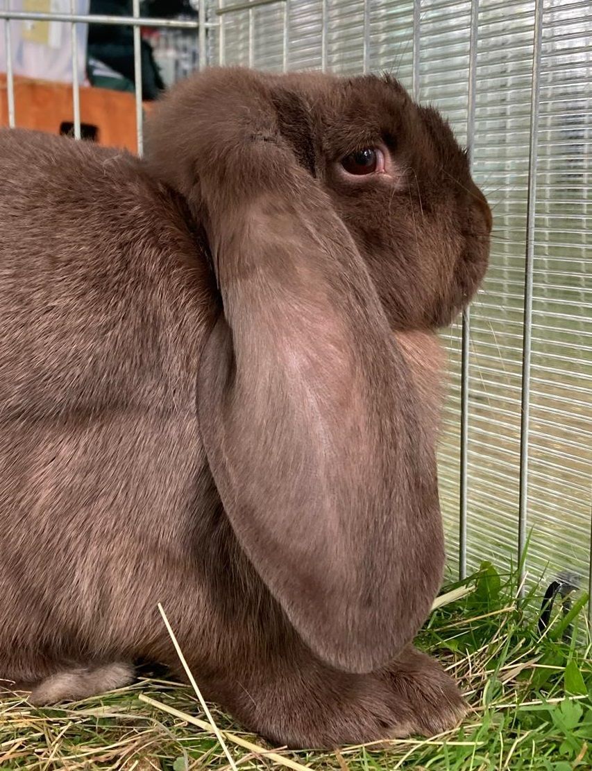 Lielās šinšillas šķirnes trusis no IVARA VIENTUĻA saimniecības.