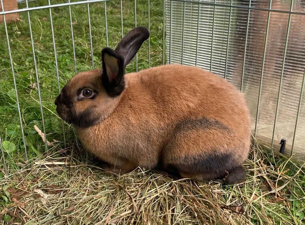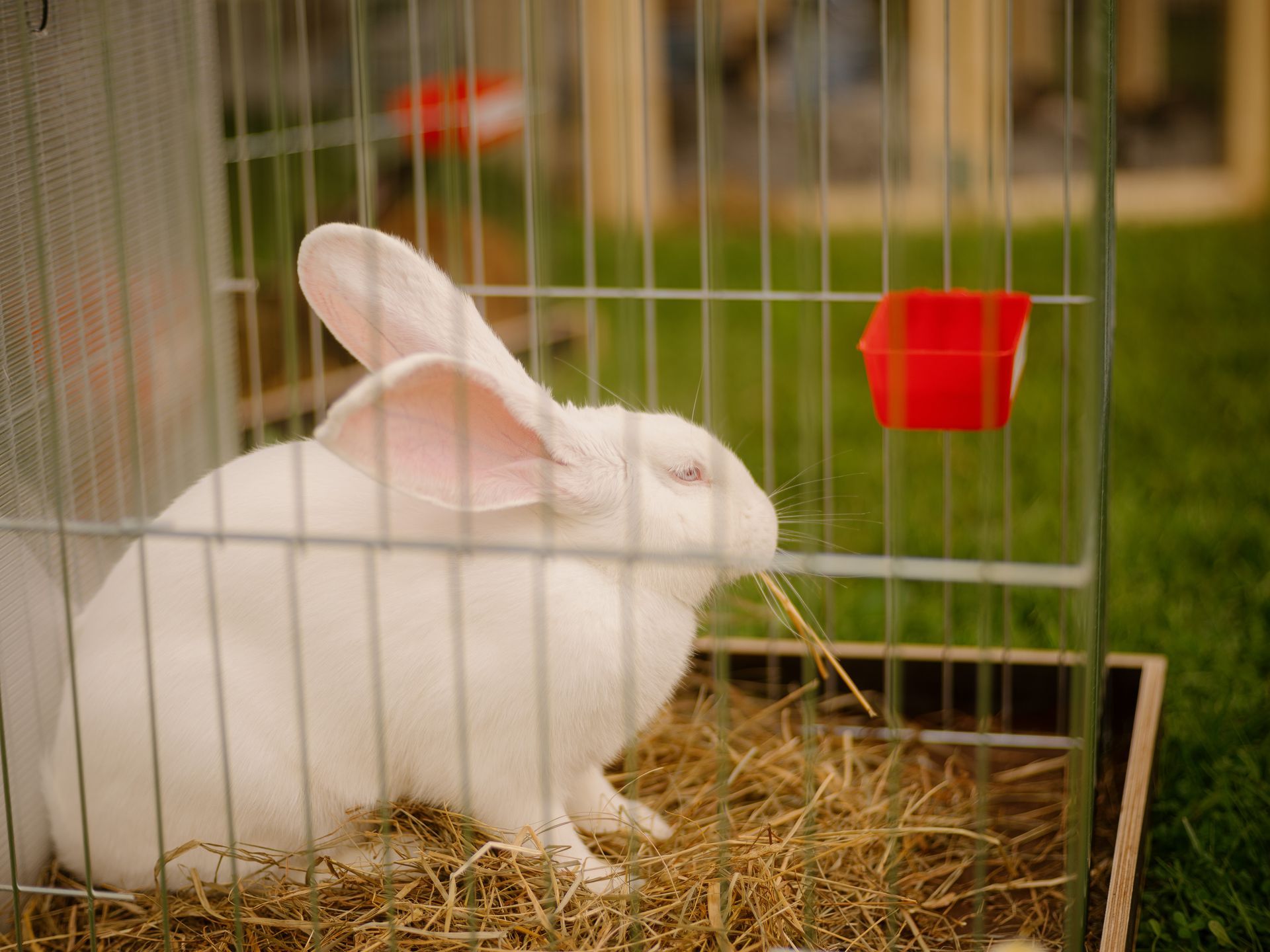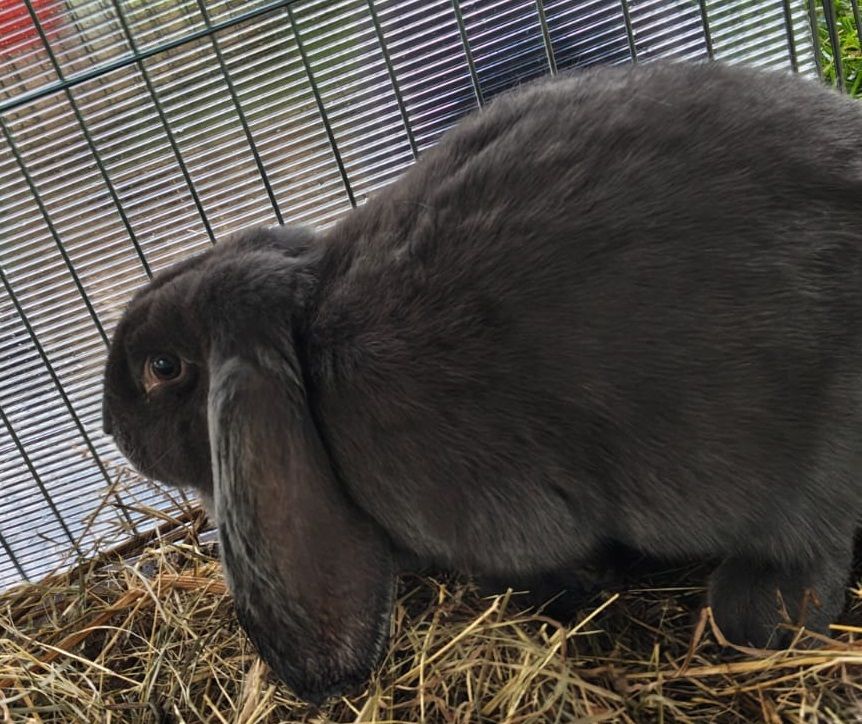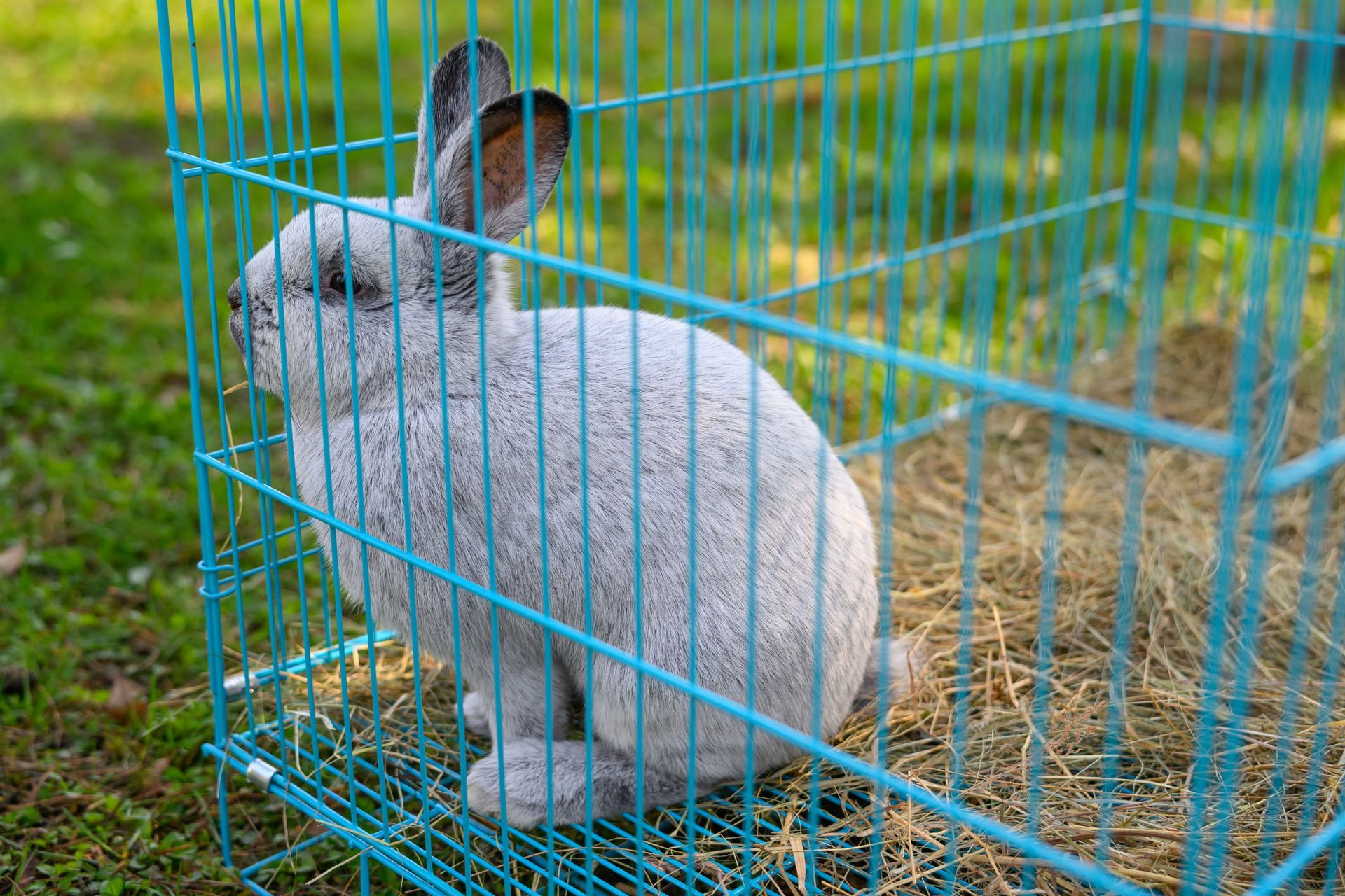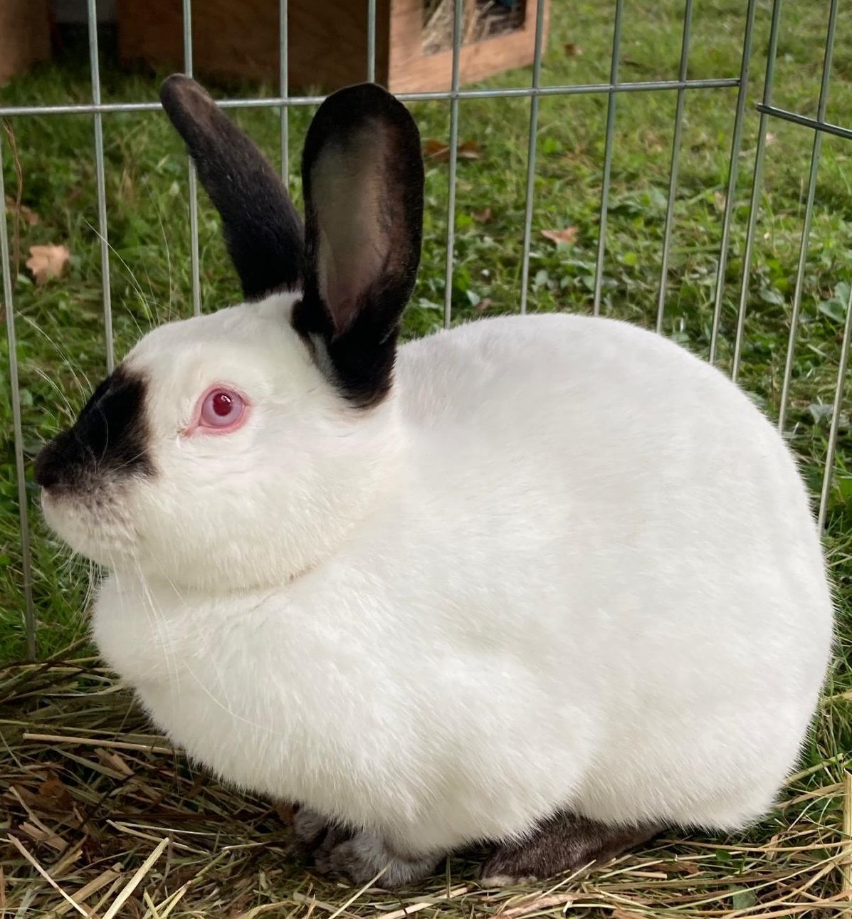 Lielās šinšillas šķirnes trusis no IVARA VIENTUĻA saimniecības.